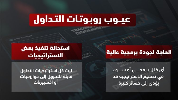 • تعقيد الإعداد والتطوير: الحاجة لخبرة برمجية ومعرفة عميقة بالأسواق لضبط وتحديث الخوارزميات.