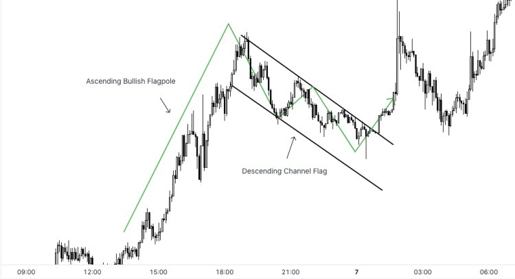 • التعرف على النمط: رصد حركة حادة تليها قناة تصحيحية ضيقة مائلة ضد الاتجاه مع انخفاض الحجم.